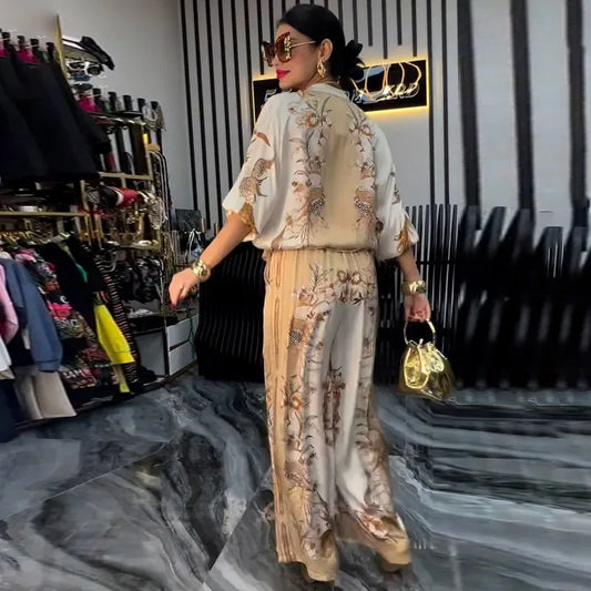 طقم ساتان فضفاض بتصميم لوحة فنية