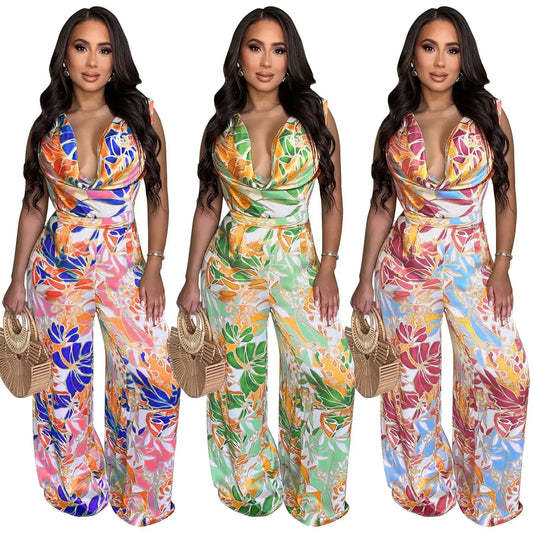 طقم بوهيمي أنيق بنقشة استوائية مفعمة بالألوان
