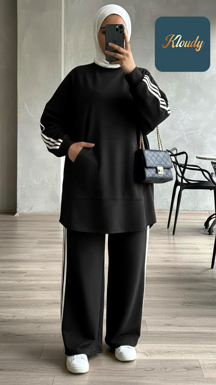نقدم لكِ طقماً عصرياً يمنحكِ إطلالة أنيقة وشعوراً بالراحة في نفس الوقت. مثالي لجميع أوقاتك.